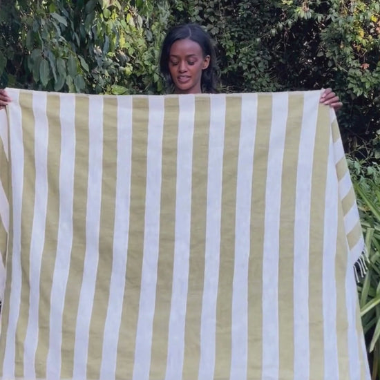 The Omo design has become a beloved classic at Sabahar, renowned for its timeless appeal. These beach towels, made from soft Ethiopian hand-spun cotton, offer exceptional comfort and absorbency that only improves with each wash. Woven on traditional two-harness looms, the flat weave ensures a lightweight, durable, and quick-drying towel that is perfect for a variety of uses. Ideal for the bathroom, beach, pool, sauna, or as a shawl, these versatile towels also make a stylish throw on a couch or bed. Finished with our signature hand-tied fringe, the Omo towels are named after the beautiful Omo River in Southern Ethiopia, adding a touch of natural elegance to your everyday essentials.
